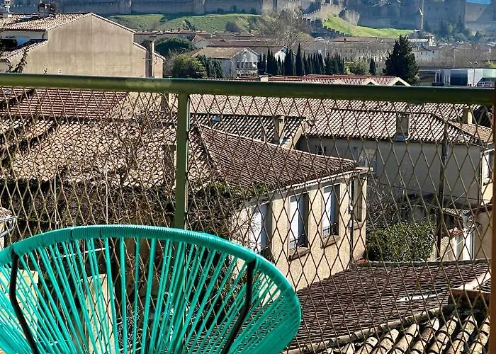 Апартаменти Duplex 70M2 - Vue Cite Medievale - Parking Gratuit пропонують близьку відстань до таких туристичних визначних пам'яток, як Chapeau Rouge, що на відстані лише 6 хвилин ходьби. Апартаменти з сонячним патіо та видом на гори розташовані в межах всього лише 0.7 км від фортеці Каркасон.